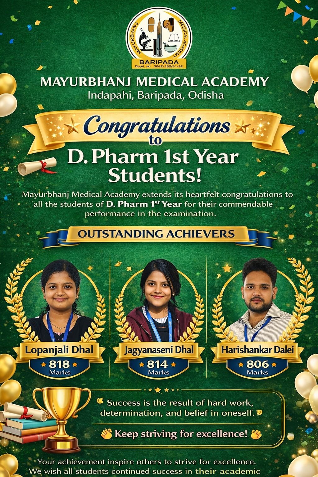 Mayurbhanj Medical Academy (MMA), Baripada is one of the leading self-financing pharmacy institutes in Odisha, established in 1992 under a visionary educational society with a mission to provide quality pharmaceutical education and training.